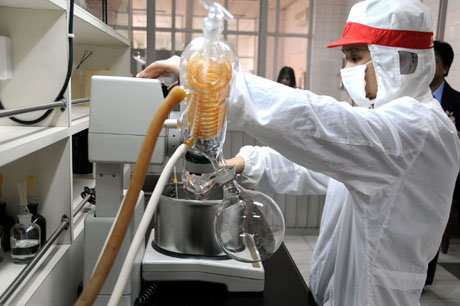 漳州市現(xiàn)已投產(chǎn)開業(yè)的臺資企業(yè)逾1100家,實際到資約53億美元。圖為漳州大型臺農(nóng)企業(yè)———東海冷凍食品有限公司的工作人員在農(nóng)殘檢測中心實驗室內(nèi)進(jìn)行檢測工作。新華社記者