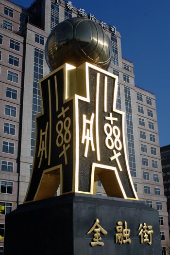 北京金融街,華泰保險公司門前的金融街雕塑。新華社記者谷欣容