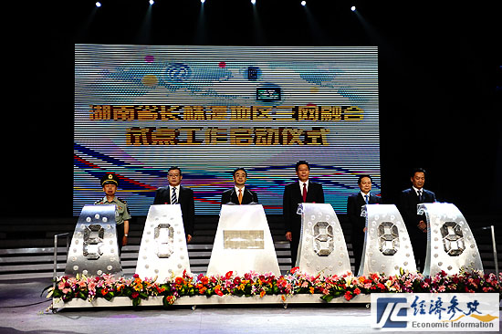 長(zhǎng)株潭城市群三網(wǎng)融合試點(diǎn)工作方案16日在長(zhǎng)沙正式拉開大幕。7月1日,國(guó)務(wù)院公布第一批12個(gè)電信網(wǎng)、廣播電視網(wǎng)和互聯(lián)網(wǎng)三網(wǎng)融合國(guó)家試點(diǎn)地區(qū)(城市),長(zhǎng)株潭地區(qū)是試點(diǎn)中的唯一城市群。圖為啟動(dòng)儀式現(xiàn)場(chǎng),湖南省委書記周強(qiáng)按下啟動(dòng)按鈕。新華社記者 李丹