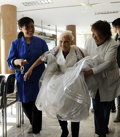 圖為10月13日,在養(yǎng)老院等多方面的努力下,重陽節(jié)前夕,居住在天津和平區(qū)鶴壽養(yǎng)老院的101歲老人陳來槺終于圓了自己多年來拍寫真的夢。新華社發(fā)(劉東岳 攝) |