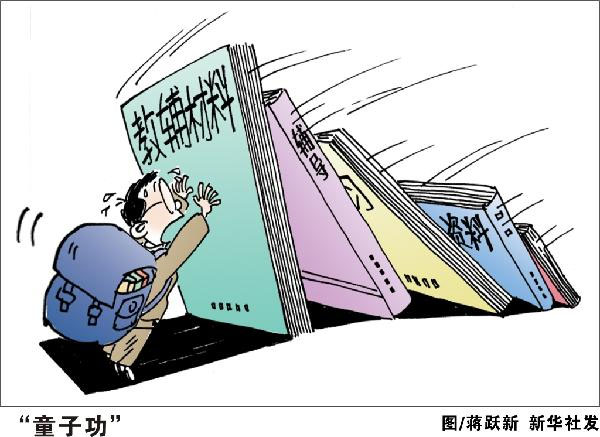 新學(xué)期開(kāi)學(xué)了,中小學(xué)生們背著書(shū)包又走進(jìn)了學(xué)堂。記者長(zhǎng)期跟蹤調(diào)查發(fā)現(xiàn),不少中小學(xué)生沉重的書(shū)包中充塞著各種各樣的教輔書(shū),有的書(shū)包中教輔書(shū)重量遠(yuǎn)超過(guò)教材書(shū)重量。更甚的是,一些教輔書(shū)良莠不齊、魚(yú)目混珠,低劣、拼湊、抄襲的居多,有的甚至錯(cuò)誤百出、以訛傳訛,對(duì)孩子們?cè)斐烧`導(dǎo)和傷害,令人擔(dān)憂(yōu)!新華社發(fā)