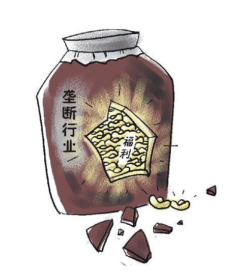 對外號稱長期虧損、困難重重,對內(nèi)卻發(fā)著天價獎金,享受著高額福利……群眾詬病已久的壟斷行業(yè)過高福利問題,在今年全國兩會召開之際再次引發(fā)密集關(guān)注。一些代表委員直言:依靠國家壟斷資源賺取的過高福利,不利于社會公平。社會日益走向公正合理,要求抓緊破除壟斷行業(yè)過高的福利。一方面要加強(qiáng)監(jiān)管,將壟斷國企中不合理的福利待遇逐一梳理清除,另一方面,要盡快改變當(dāng)前部分壟斷行業(yè)的管理體制、市場機(jī)制,讓市場邁向開放,讓企業(yè)運營走向透明。新華社發(fā)