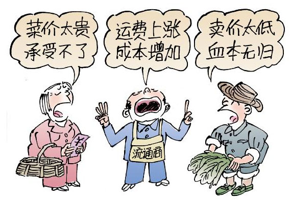 “菜賤傷農(nóng)”和“賣菜難”現(xiàn)象仍在持續(xù)。令人費(fèi)解的是,市場上出現(xiàn)了菜農(nóng)市民“兩頭訴苦”、流通商“中間喊冤”的怪現(xiàn)象。 新華社發(fā)