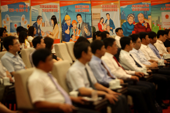 7月4日,《中華人民共和國社會保險法》宣傳周啟動。圖為在人民大會堂舉行的宣傳周啟動儀式現(xiàn)場。記者 金立旺