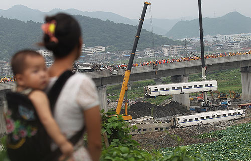 7月24日下午,溫州動車特大事故現(xiàn)場。新華社發(fā)(鄭鵬