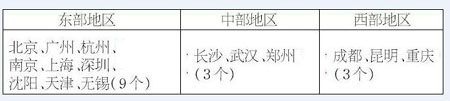 表1 15個(gè)城市在東、中、西部地區(qū)的分布