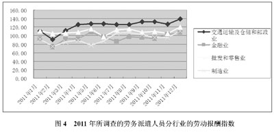 2011年所調(diào)查的勞務(wù)派遣人員的勞動(dòng)報(bào)酬水平逐步提高。