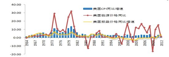 圖1:美國(guó)的CPI、能源價(jià)格、服裝價(jià)格(%),數(shù)據(jù)來(lái)源:WIND