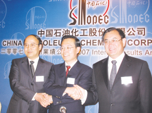 | 中國(guó)石化高層(中為董事長(zhǎng)蘇樹林、右為總裁王天普、左為財(cái)務(wù)總監(jiān)戴厚良)集體亮相香港 | 短板不短