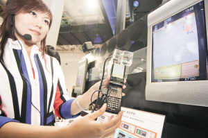 | 在第16屆中國國際通信設(shè)備技術(shù)展覽會上,模特展示夏普WCDMA手機