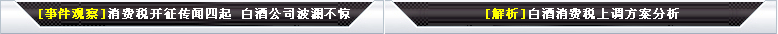 | 繼前不久有關(guān)部門大幅上調(diào)煙產(chǎn)品“消費稅”和額外加征“從價稅”之后,媒體最近又報道,白酒消費稅可能在近日提高。鑒于煙酒在我國社會生活中的重要地位,有評論認(rèn)為,有關(guān)部門在煙酒方面的“敏于征”而“慎于控”也受到公眾批評。[詳細(xì)] | |