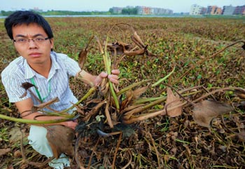 原產(chǎn)于南美洲亞馬遜河流域、作為豬禽飼料而被大規(guī)模“請(qǐng)進(jìn)來(lái)”的水葫蘆,如今正在我國(guó)南方進(jìn)行一場(chǎng)不折不扣的生態(tài)入侵戰(zhàn),位于閩江流域上游的福建南平無(wú)疑是主戰(zhàn)場(chǎng)。南平市各部門用盡百般措施向這株外來(lái)“毒草”宣戰(zhàn),結(jié)果卻是成災(zāi)面積仍在擴(kuò)大。 打撈是整治水葫蘆最原始的方法。劉杰俊曾設(shè)想:“水葫蘆一般在夏季大量繁殖,在繁殖高峰期打撈無(wú)疑事倍功半,人工打撈應(yīng)打時(shí)間差,在冬季這樣寒冷的季節(jié),在其未形成氣候時(shí),便將它清理完! 然而,事實(shí)上,水葫蘆自身繁殖能力強(qiáng),打撈的速度遠(yuǎn)不及繁殖的速度。時(shí)常是過(guò)一個(gè)晚上,前一天剛清理的江面,又呼啦啦地冒出一大片,如此循環(huán)反復(fù),治理似乎永無(wú)盡頭。 前幾年,南平市與有關(guān)高?蒲袡C(jī)構(gòu)經(jīng)過(guò)認(rèn)真調(diào)研,提出水葫蘆“變害為寶”的解決方案,即將水葫蘆根部、枯葉作為生物復(fù)合肥的原料,把水葫蘆的葉子及嫩莖經(jīng)生物發(fā)酵處理后用作飼料。 這一方案最終并未付諸實(shí)施。劉杰俊說(shuō),方案在當(dāng)時(shí)就受到了各界質(zhì)疑。根本原因在于,水葫蘆雖泛濫成災(zāi),但似乎達(dá)不到企業(yè)進(jìn)行產(chǎn)業(yè)化加工的量,“企業(yè)擔(dān)憂的是引進(jìn)設(shè)備后,一旦生產(chǎn)原料不足,豈不無(wú)米下炊了! 專家絞盡腦汁后又發(fā)現(xiàn),水葫蘆肆虐,原因之一在于其作為外來(lái)物種,缺少天敵。目前,國(guó)外有一種叫象甲的昆蟲(chóng)能有效地控制水葫蘆!跋蠹讟O愛(ài)吃水葫蘆,而且目前也沒(méi)有發(fā)現(xiàn)它會(huì)危害別的植物!眲⒔芸≌J(rèn)為,可適度人工養(yǎng)殖象甲,用其遏制水葫蘆。 但有關(guān)資料表明,緯度較高的地區(qū),因?yàn)闅鉁卦,象甲無(wú)法越冬,“泥菩薩過(guò)江自身難!保重M能在與“毒草”的遭遇戰(zhàn)中“克敵制勝”。 據(jù)福建省環(huán)保局介紹,近一段時(shí)期的氣溫升高,給水葫蘆生長(zhǎng)創(chuàng)造了良好條件,并呈現(xiàn)瘋狂蔓延之勢(shì),福建全省水葫蘆面積現(xiàn)已達(dá)40萬(wàn)畝左右。