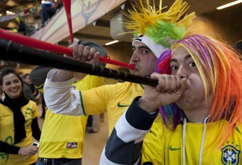 盡管飽受抨擊和埋怨,但毫無疑問,“嗚嗚祖拉”已成為本屆南非世界杯的某種象征,在世界各地廣受歡迎。 |
