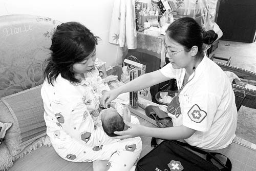 2007年9月,浙江省舟山市某社區(qū)衛(wèi)生服務(wù)中心醫(yī)生周松娜,來到民工產(chǎn)婦趙芯家中,進(jìn)行免費測量體溫、量血壓,并傳授家庭護(hù)理新生兒的技術(shù)。胡社友