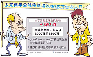 世界銀行總裁策利克日前表示,2009年上半年全球經(jīng)濟(jì)形勢(shì)可能更加糟糕,失業(yè)率上升將令各國(guó)政府面臨更沉重壓力。 | 2008年爆發(fā)的金融和經(jīng)濟(jì)危機(jī),2009年可能轉(zhuǎn)化為就業(yè)危機(jī)。而國(guó)際勞工組織日前也發(fā)出警告,到2009年底,金融危機(jī)可能使世界失業(yè)人口從2007年的1.9億上升到2.1億,創(chuàng)出近十年的新高。 在中國(guó),日前中國(guó)社科院發(fā)布2009年《社會(huì)藍(lán)皮書(shū)》預(yù)測(cè)大學(xué)生失業(yè)率超過(guò)12%,明年就業(yè)壓力將進(jìn)一步加大,調(diào)查失業(yè)率有可能超過(guò)9.4%,是登記失業(yè)率的3倍左右,150萬(wàn)大學(xué)生2008年底難以就業(yè)。 近日有消息稱,全國(guó)1.3億外出農(nóng)民工780萬(wàn)已提前返鄉(xiāng),就業(yè)壓力在春節(jié)后將面臨真正的考驗(yàn)。