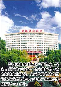 2006年,晉城煤業(yè)集團(tuán)按照“煤、氣、電、化”綜合發(fā)展,建設(shè)環(huán)保型綠色礦山的中長(zhǎng)期發(fā)展規(guī)劃,同心同力,奮力超越,科學(xué)發(fā)展,取得了豐碩的發(fā)展成果。2006年中國(guó)企業(yè)500強(qiáng)排名,晉城煤業(yè)集團(tuán)由原來(lái)的第274位躍升至168位;2006年中國(guó)煤炭企業(yè)100強(qiáng)排名,晉城煤業(yè)集團(tuán)由第13位躍升至第7位;晉城煤業(yè)集團(tuán)煤炭產(chǎn)品“藍(lán)焰”商標(biāo)被國(guó)家工商部門(mén)認(rèn)定為中 國(guó)馳名商標(biāo),“藍(lán)焰”牌無(wú)煙煤“洗中塊”被批準(zhǔn)為“免檢產(chǎn)品”。在取得良好社會(huì)效益的同時(shí),企業(yè)經(jīng)濟(jì)規(guī)模、經(jīng)濟(jì)運(yùn)行質(zhì)量和效益持續(xù)穩(wěn)步增長(zhǎng)。截止到2006年底,集團(tuán)公司總資產(chǎn)323.41億元,同比增長(zhǎng)25.98%;全年實(shí)現(xiàn)生產(chǎn)經(jīng)營(yíng)總額225.46億元,同比增長(zhǎng)24.09%;全年實(shí)現(xiàn)利潤(rùn)12.38億元,同比增長(zhǎng)19.73%;全年上繳稅費(fèi)19.8億元,同比增長(zhǎng)3.5%。