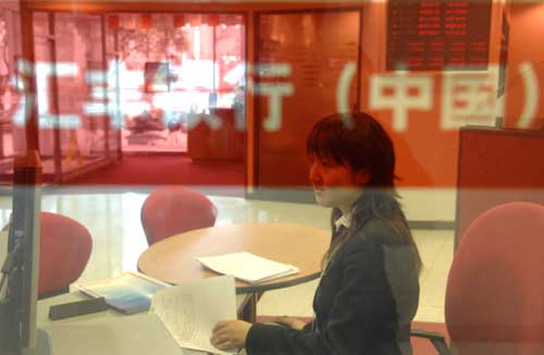 4月2日,匯豐銀行(中國)的一名員工在辦公。當日,首批四家外資大陸法人銀行匯豐(中國)、渣打(中國)、東亞(中國)、花旗(中國)正式開業(yè)。外資銀行可以向內地居民提供包括人民幣存貸款的全面銀行服務。