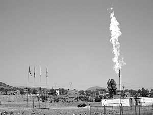 奧瑞安設(shè)計并組織實施的潘莊井組單井生產(chǎn)火炬(潘莊位于山西省晉城市,潘莊區(qū)塊由美國美中能源公司擔(dān)任作業(yè)者,中方合作方有中聯(lián)煤層氣有限責(zé)任公司和晉城煤業(yè)集團)。 圖片中的火炬是PZP01-2井率先獲得50000立方米產(chǎn)量突破時拍攝的。現(xiàn)在井組中6口井的平均產(chǎn)能已經(jīng)超過這個水平,部分井已經(jīng)實現(xiàn)了單井85000立方米的日產(chǎn)氣能力。各井仍在產(chǎn)量上升期,預(yù)計最終可以實現(xiàn)單井平均80000立方米的日產(chǎn)氣能力。奧瑞安作為鉆井服務(wù)商和排采生產(chǎn)管理服務(wù)商,承擔(dān)了從項目地質(zhì)研究到鉆井實施最后到日常生產(chǎn)維護的所有工程和管理工作。為保證生產(chǎn)效率,公司使用了稍早專門開發(fā)的煤層氣排采生產(chǎn)管理軟件,同時對排采設(shè)備系統(tǒng)進行了全面優(yōu)化改進,保障了井組排采的持續(xù)穩(wěn)定高產(chǎn)。目前奧瑞安已經(jīng)完成了水平井排采的系統(tǒng)理論和技術(shù)總結(jié),正在積極組織將其應(yīng)用到公司為中石油承建的大規(guī)模產(chǎn)能示范項目中。 | 將煤層氣變廢為寶