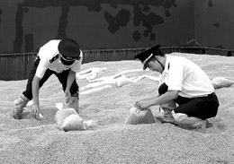 寧波檢驗(yàn)檢疫局工作人員在北侖口岸對(duì)巴西進(jìn)口大豆提取檢疫樣品 |