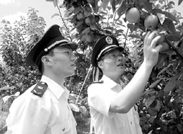 寧波檢驗(yàn)檢疫局工作人員在寧波市灣底村對(duì)出口農(nóng)產(chǎn)品基地進(jìn)行源頭管理 |