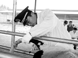 寧波檢驗(yàn)檢疫局工作人員在抽取新西蘭進(jìn)口奶牛的血樣 |