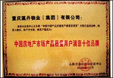 公司先后獲得“重慶市先進企業(yè)”、“重慶市精神文明優(yōu)秀團體”、“重慶市私營企業(yè)五十強”、“重慶市首屆房地產(chǎn)開發(fā)企業(yè)五十強”、“重慶市重合同守信用企業(yè)”、“重慶市企業(yè)法人知名字號”、“全國百家誠信建設(shè)示范單位”、“中國工程招標重點推薦單位”、“中國首屆房地產(chǎn)創(chuàng)新獎”、“2003年中國人居優(yōu)秀品牌”等40多項榮譽稱號。