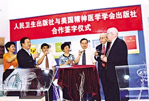 ——與美國骨科學(xué)會、精神病學(xué)會出版社、兒科學(xué)會正式簽約合作出版圖書,雙方共同策劃圖書選題、共同組織國內(nèi)外專家編寫、共同編輯加工,以雙方的名義同時出版中、英文兩種版本,中文版在國內(nèi)銷售,英文版在國際銷售。雙方利益共享,風(fēng)險共擔(dān)。三個簽約儀式分別在2007年8月30日至9月3日舉辦的第14屆北京國際圖書博覽會期間隆重舉行。