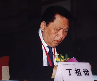 在熱烈掌聲中,代表中國民辦高教的領軍人物丁祖詒教授走上主席臺,他即興地侃侃而談: