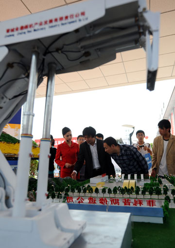 山西省第八屆太原煤炭工業(yè)技術(shù)裝備展覽會(huì)22日在山西省展覽館舉行,展出了近300個(gè)廠家的1000多種煤炭專業(yè)技術(shù)產(chǎn)品,涉及煤炭采掘設(shè)備、安全監(jiān)控系統(tǒng)、勘探設(shè)備等。圖為參觀者在展會(huì)上觀看一個(gè)礦山模型。