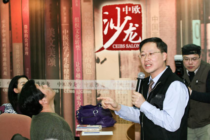 “相見恨晚!”一位中年男士握著張峻斌博士的手說出這句話,他代表中歐國際工商學(xué)院六十余名聽課校友,向中歐沙龍主講人送上了一份精致的禮品。