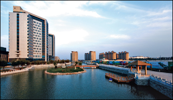 從北京天安門沿長(zhǎng)安街驅(qū)車向東,即可到達(dá)潮白河畔。遠(yuǎn)遠(yuǎn)望去,緊鄰河畔的一座座高樓拔地而起,燕達(dá)國(guó)際健康城清晰可見。作為大型國(guó)際醫(yī)療健康產(chǎn)業(yè)項(xiàng)目,燕達(dá)國(guó)際健康城以“世界級(jí)的醫(yī)療服務(wù)、世界級(jí)的健康生活”為愿景,構(gòu)筑了一個(gè)涵蓋國(guó)際醫(yī)療、健康養(yǎng)護(hù)、健康管理、醫(yī)療科研、醫(yī)療教育、醫(yī)療國(guó)際交流等諸多領(lǐng)域的“大健康產(chǎn)業(yè)”。 歷時(shí)五年打造的燕達(dá)國(guó)際健康城將于2010年6月盛大揭幕。項(xiàng)目總投資100億元人民幣,占地面積50萬(wàn)平方米(不含附屬用地),總建筑面積110萬(wàn)平方米。燕達(dá)國(guó)際醫(yī)院擁有四座總計(jì)25萬(wàn)平方米住院樓,一座7萬(wàn)平方米的康復(fù)樓,一座5萬(wàn)平方米的門診樓以及一座6萬(wàn)平方米的醫(yī)技樓,總醫(yī)療面積43萬(wàn)平方米。設(shè)置醫(yī)療床位2000張,康復(fù)床位1000張。國(guó)際健康養(yǎng)護(hù)中心總建筑面積60萬(wàn)平方米,設(shè)置床位12000張。 燕達(dá)國(guó)際健康城由五大板塊構(gòu)成:國(guó)際醫(yī)院、金色年華健康養(yǎng)護(hù)中心、國(guó)際醫(yī)學(xué)研究院、國(guó)際醫(yī)護(hù)培訓(xùn)學(xué)院、國(guó)際會(huì)議中心。五大板塊相互獨(dú)立又互為補(bǔ)充和促進(jìn)。在自然景觀布局上,通過(guò)一條總面積近4萬(wàn)余平方米的水系帶狀公園,將健康城自然地分隔為燕達(dá)國(guó)際醫(yī)院和金色年華健康養(yǎng)護(hù)中心兩大部分。健康城綠化率高達(dá)38%,園區(qū)內(nèi)各個(gè)景觀相互交融、相映生輝,形成了小橋流水、亭臺(tái)軒榭、花鳥樹木、游船雕塑,動(dòng)靜相宜的特色美景。