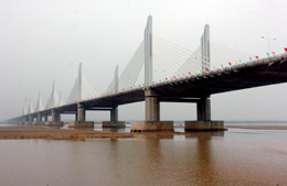 11月28日,大(慶)廣(州)高速公路河南段標(biāo)志性建筑——開封黃河大橋建成通車。 開封黃河大橋于2004年9月開工建設(shè),總投資約20億元,全長(zhǎng)7.8公里,主橋長(zhǎng)1010米,橋?qū)?7.4米。圖為建成通車的開封黃河大橋。