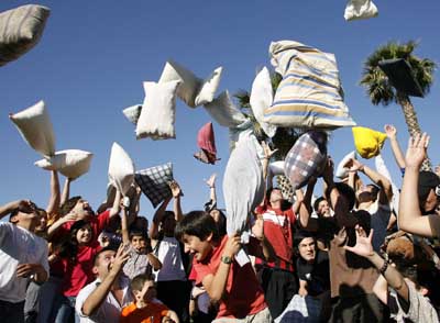 智力比尼亞德?tīng)栺R舉辦枕頭“大戰(zhàn)”