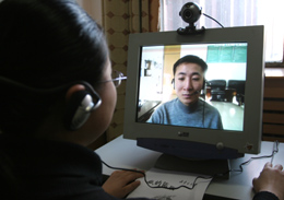 近日,內(nèi)蒙古自治區(qū)第一家網(wǎng)絡(luò)視頻面試系統(tǒng)在內(nèi)蒙古大學(xué)開通,該校畢業(yè)生通過就業(yè)指導(dǎo)中心的視頻網(wǎng)絡(luò)就可與用人單位在網(wǎng)上完成初步面試,增加畢業(yè)生選擇工作崗位的機會,也為招聘單位提供了方便。圖為內(nèi)蒙古大學(xué)法學(xué)院畢業(yè)生侯佳(左)通過網(wǎng)絡(luò)和一家外地公司洽談。
