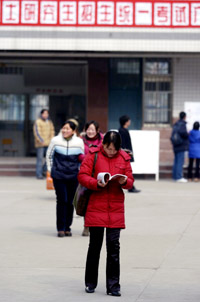 一些專家認(rèn)為,由于本科生畢業(yè)求職期望日趨理性,加上研究生就業(yè)前景并不樂觀,考研不再是緩解就業(yè)壓力的權(quán)宜之計(jì),很多大學(xué)生對(duì)自己未來的預(yù)期和計(jì)劃也越來越實(shí)際。還有很多學(xué)生認(rèn)為,得到較好的工作機(jī)會(huì)不容易,所以選擇先就業(yè)。圖為一位參加2007年全國碩士研究生招生統(tǒng)一考試的考生考完后在查看資料。