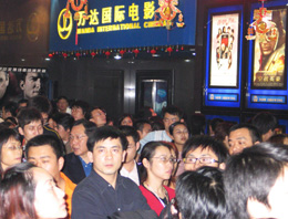 曾一度蕭條的南寧電影市場近期重新升溫,市內(nèi)各大影院上座率都在2/3以上。圖為南寧市民在萬達(dá)電影城購票時的場景。