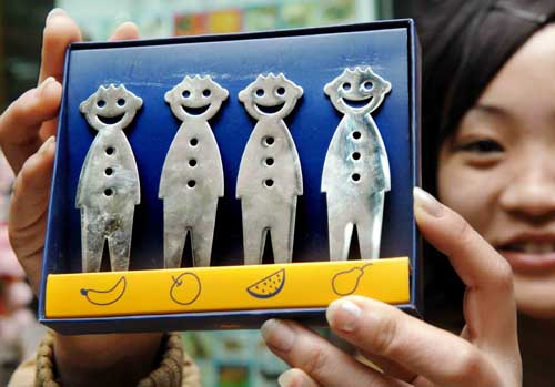 近日,一系列另類造型的餐具亮相銀川,卡通的煎鍋、人形的刀叉、扭曲的湯勺等,為單調(diào)的廚房增添了不少情趣。