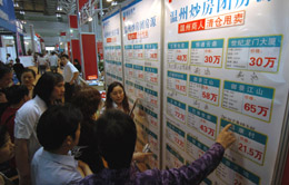 5月17日,購(gòu)房者在房交會(huì)上關(guān)注溫州炒房團(tuán)房源。