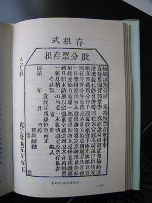 事情確實也如此,從有人提出引進輪船和開辦西方式的新型企業(yè)到招商局成立,晚清朝野之間經(jīng)歷了十多年時間的徘徊、爭議、反對,障礙重重。如果不是李鴻章抱定此事是“毅然必行之事,破群議而為之”去進行推動的話,招商局還不可能在1872年成立!罢猩叹钟衫铠櫿伦嘣O(shè),局務(wù)應(yīng)由李鴻章主政”,出自總理衙門的這句話,除了進一步確認了招商局與李鴻章之間的關(guān)系外,也明確了企業(yè)的責任歸屬。這一點,對于當時社會裂變期中國新型企業(yè)的生存環(huán)境和條件,同樣起到了畫龍點睛的作用。 其次是股票中對企業(yè)本身情況的說明,即對該局的總股本,每股的金額和分配方面的規(guī)定以及需注意事項的說明中,也有幾點很不尋常:一是每股的金額特別大,如按每股一千兩計算,總股本只有一千股,即使按先收一半即五百兩,每位股東再按平均購買一股算,股東總數(shù)也只有2000人,何況不可能每位股東都只購買一股,因此股東總?cè)藬?shù)低于2000人是可以肯定的。這個規(guī)定,與傳統(tǒng)中國社會中合伙企業(yè)的股東數(shù)量一般不多是一脈相承的。二是文字中明確有“每年壹分生息”的規(guī)定。這個“壹分生息”的規(guī)定在招商局的局規(guī)中被稱為“官利”,是每年不管企業(yè)經(jīng)營情況如何都必須發(fā)放的固定股息,如果企業(yè)經(jīng)營的好,利潤率超過壹分,超過壹分發(fā)放的利息被稱為“紅利”或“余利”。這一點,與西方企業(yè)中的優(yōu)先股的規(guī)定還不一樣,因為當時甚至沒有優(yōu)先股的概念。因此,這個規(guī)定絕對可以稱得上是有中國特色的東西。因為西方一般股份制企業(yè)通行的規(guī)則,是股票收益應(yīng)視企業(yè)的效益如何而定,而不能事先規(guī)定固定的利息率。規(guī)定利率的現(xiàn)象,一般只存在于債券的發(fā)行中。招商局這時既無優(yōu)先股的規(guī)定,而“官利”的特點又與一般西方式股份制的規(guī)定有明顯區(qū)別。因此從這個意義上看,當時的這份股票又帶有債券的性質(zhì)。有意思的是,由招商局“開其端”的規(guī)則中也包括這個“官利”的分配制度在內(nèi)。在招商局之后陸續(xù)成立的其它企業(yè)如開平礦務(wù)局、上海機器織布局、徐州利國礦務(wù)局以及20世紀后中國成立的其他各種類型的股份制企業(yè)中,這種規(guī)定都一直存在,并且一直存在到1956年資本主義企業(yè)全行業(yè)實行公私合營改造時才被定息所取代。 三是在交款購買股票時,除拿到留下存根后的股票外,還同時發(fā)給領(lǐng)取“官利”的息折和局章各一本。也就是說,通過這些方式以及規(guī)定,在強調(diào)這份股票的合法性和權(quán)威性的同時,還保證其在運作中的可操作性。 總之,從這份股票中留下的這些規(guī)定以及嚴厲的語氣看,給人的印象是除了有關(guān)企業(yè)的規(guī)定外,似乎是企業(yè)股票的味道少而官方文告的味道多,但也正是在這些地方,透視和散發(fā)出歷史變化的氣息。