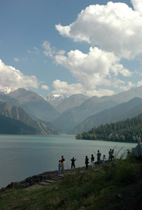 游客們陶醉在天池美景中。本報記者:劉愷 攝 |