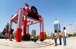 奧運(yùn)火炬來遼倒計(jì)時(shí)紀(jì)念雕塑沈陽亮相