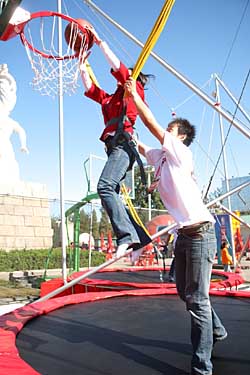 2007NBA中國(guó)賽籃球嘉年華活動(dòng)上周末登陸北京,在工人體育場(chǎng)舉行。 本次NBA嘉年華的活動(dòng)場(chǎng)地超過(guò)兩千平方米,免費(fèi)向所有年齡的球迷開(kāi)放,以期讓他們體驗(yàn)籃球運(yùn)動(dòng)的樂(lè)趣與魅力,挑戰(zhàn)自己的技術(shù)水平;顒(dòng)內(nèi)容包括一系列以NBA為主題的互動(dòng)游戲,如灌籃大賽、本地拉拉隊(duì)表演、跳躍投籃及蹦床扣籃等。 活動(dòng)期間,前NBA球星、曾有NBA“罰籃王”美譽(yù)的杰克·巴里也來(lái)到現(xiàn)場(chǎng),向球迷們展示了其百步穿楊的球技,為活動(dòng)增色不少。 據(jù)悉,NBA嘉年華還將于10月19日到訪廣州。