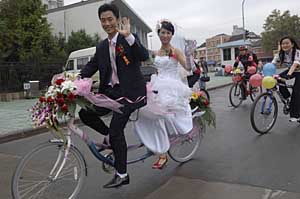 走路上班盡管健康,但也有很大的局限性——住的地方離單位不能很遠,否則難以堅持,對身體的消耗也太大。由此,騎自行車成為了另一種綠色出行方式。 趙先生是一名自行車的忠實愛好者。他告訴記者,從上大學(xué)到工作,他一直以自行車為主要交通工具,只要情況允許,他一般不選擇公交、地鐵、出租等交通方式。 而趙先生選擇自行車,并不完全因為方便,其實他本人還是一名環(huán)保志愿者!肮(jié)能減排的重要意義大家都明白,可是很多人認(rèn)為這和自己沒什么關(guān)系。其實,只要大家能盡量多地使用自行車這樣的綠色交通工具,就是在為環(huán)境、為后代做貢獻了!壁w先生說。 事實上,像趙先生這樣懷念自行車的人越來越多,如今,人們對自行車這種傳統(tǒng)交通方式的回歸已催生了一些新的行業(yè)。 記者在北京國華商場、牛街路口等地看到,上百輛顏色鮮艷且統(tǒng)一規(guī)格的自行車整齊地停在路邊。原來,這里開設(shè)了自行車租車點,行人只要辦一張會員IC卡,就可以以每小時五角錢的價格租到自行車,且可以在其他網(wǎng)點異地還車,電子計時扣費,非常方便。
