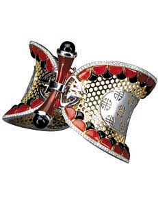 第五屆中國珠寶首飾設(shè)計(jì)大獎(jiǎng)賽評選結(jié)果日前在京揭曉,金銀組、鉆石組、珍珠組、有色寶石組四個(gè)組別的28件獲獎(jiǎng)作品逐一亮相。一件件具有東方神韻的珠寶首飾在模特們的精彩演繹下,贏得聲聲贊嘆。 與往屆相比,本屆設(shè)計(jì)大獎(jiǎng)賽作品具有東方元素、奧運(yùn)精神、中國創(chuàng)造的三大亮點(diǎn)。 “東方魅力”激發(fā)無限創(chuàng)意——本屆設(shè)計(jì)大獎(jiǎng)賽以“魅力東方”為主題,來自東方服飾文化、宗教藝術(shù)、古典詩詞、哲學(xué)思想、音樂戲劇的創(chuàng)意靈感,通過黃金、珍珠、有色寶石、鉆石演繹出了一件件精美的首飾。 “08奧運(yùn)”閃耀光彩——隨著2008北京奧運(yùn)會的一天天臨近,“奧運(yùn)”對社會生活、文化藝術(shù)的影響越發(fā)深入而廣泛,“奧運(yùn)在中國”已經(jīng)形成了一種文化現(xiàn)象,這股風(fēng)潮同樣體現(xiàn)在了首飾設(shè)計(jì)領(lǐng)域。在48件入圍作品中,有六件作品的設(shè)計(jì)創(chuàng)意與“奧運(yùn)、運(yùn)動(dòng)”有關(guān)。 中國創(chuàng)造嶄露頭角——在國際首飾設(shè)計(jì)界,意大利、日本、德國、印度等國家的首飾設(shè)計(jì)具有鮮明的地域特點(diǎn),在本屆大獎(jiǎng)賽中,中國風(fēng)格的首飾設(shè)計(jì)以中國原創(chuàng)風(fēng)格嶄露頭角。獲獎(jiǎng)作品99%都是由內(nèi)地加工制造企業(yè)獨(dú)立制作完成的,反映了我國首飾制作水平的飛速提高。而設(shè)計(jì)與工藝并重也表明了我國首飾產(chǎn)業(yè)正從中國制作向中國創(chuàng)造發(fā)展。 據(jù)悉,本屆大獎(jiǎng)賽由中國珠寶玉石首飾行業(yè)協(xié)會、國土資源部珠寶玉石首飾行業(yè)協(xié)會主辦,中國寶石雜志承辦,深圳周大生珠寶公司冠名贊助。(圖片提供/大賽主辦方)
