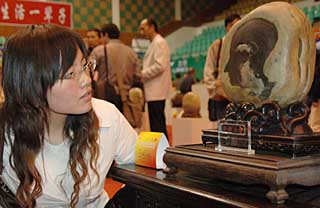 攝) | 為配合第八屆中國藝術節(jié),三峽奇石精品展11月4日在湖北省宜昌市開幕。記者現(xiàn)場觀展發(fā)現(xiàn),被譽為“濃縮山川秀水、再現(xiàn)古今奇觀”的三峽奇石,日漸受到人們喜愛,并成為了一項陶冶情操、致富當?shù)匕傩盏奶厣幕a(chǎn)業(yè)。 三峽石因產(chǎn)于長江三峽沿岸河床灘頭而得名,色彩以黑、白、灰、黃色為主,紋理獨特,象形石、文字石、圖畫石妙趣天成,令人嘆為觀止。三峽奇石小到幾克,大到幾十噸,經(jīng)過打磨、加工,賣價從幾元到數(shù)十萬元不等。 從上世紀80年代起,一批有經(jīng)營頭腦的企業(yè)家和經(jīng)營戶紛紛進入奇石領域,將三峽奇石向商品化、產(chǎn)業(yè)化方向推進,尤其是打磨拋光技術的運用,更是大大促進了三峽奇石的商品化步伐。 記者注意到,宜昌人玩石、賞石風盛行,石頑、石癡人數(shù)眾多,收藏、品賞蜚聲海外,玩石、藏石、賞石已成為宜昌市民一種新的時尚生活。據(jù)三峽奇石收藏家協(xié)會統(tǒng)計,宜昌市奇石收藏者已由10年前的200多人猛增到現(xiàn)在八萬多人,奇石收藏量達到50枚以上的已有2000多戶,奇石收藏真正進入了尋常百姓家。長陽清江奇石館、清江奇石苑、點軍車溪奇石山莊、五峰灣潭奇石館、三峽奇石城等一批大型奇石館相繼誕生。 如今,長陽縣的奇石專業(yè)村發(fā)展到六個,專業(yè)戶有100多家,從事采集、收藏奇石的人有數(shù)萬人,長陽成立了奇石協(xié)會,清江奇石一年為長陽創(chuàng)收近千萬元。五峰、遠安、秭歸、夷陵、興山、宜都等縣市區(qū),也相繼出現(xiàn)了大批奇石經(jīng)營專業(yè)戶。 三峽奇石收藏推動了本土文化的對外交流。今年9月,三峽奇石收藏家協(xié)會代表湖北省組團參加了“2007走進奧運”中國觀賞石展,王斌的清江石“薩馬蘭奇”獲得金獎,同時還獲得兩枚銀獎、三枚銅獎,獲獎數(shù)在全國名列前茅。宜昌也先后舉辦了兩次大型奇石展,李發(fā)軍、謝藝揚等一批藏家走出宜昌,在重慶、廣西等地開辦三峽奇石展館,推動了三峽奇石文化與各地的交流。 |