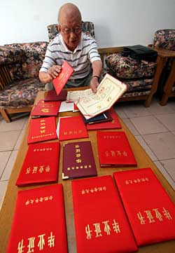 在貴州老年大學有一個非常特別的班級“99聲樂提高班”,這個班87名學生多半是1995年至1999年報名就讀的,可至今10多年過去,他們?nèi)詻]有畢業(yè),因此也成為全校平均年齡最大的班級,班里曾有三位90多歲的學生,其中兩位今年剛剛?cè)ナ,還有一位仍在堅持上課。 是什么力量讓這些老年人對學校生活如此眷戀,75歲的班長殷瓊珍說:“學校是我們大家的第二個家,只要學校允許,我們永遠也不想畢業(yè),我們想在這里一直學下去。”她說,當時學校只有這一個聲樂班,很多喜歡唱歌的老年朋友陸續(xù)加入,大家在這里愉快地學習、愉快地歌唱,感情越來越深,以至于大家都舍不得分開。 87歲高齡的袁愈慧精神抖擻地坐在第一排,隨著音樂節(jié)拍放聲高歌“珠穆朗瑪”,她告訴記者,從1990年到老年大學學習,十幾年來學過書法、國畫、太極拳、中醫(yī)、聲樂等多門課程,“對我來說,每次上課都像過節(jié)一樣,一次課結(jié)束就盼著下一次上課”。袁愈慧的家距離學校有10多站路程之遠,“只要能起床行動,我絕不會耽誤一節(jié)課,”她告訴記者,老伴已經(jīng)去世多年,孩子不在身邊,到學校學習,和朋友們交流是她最大的精神寄托。