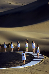 皮爾·卡丹在敦煌鳴沙山舉行2008春夏時(shí)裝發(fā)布會(huì) 本報(bào)記者:聶建江