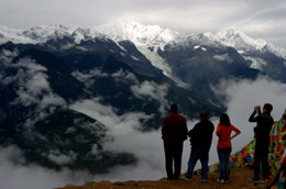 幾位游客在觀賞梅里雪山。 本報(bào)記者:秦晴