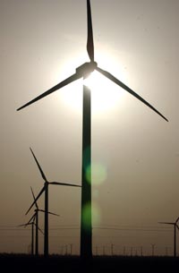 風能資源豐富的甘肅省酒泉市將啟動千萬千瓦級風電基地建設項目。甘肅省根據國家風電發(fā)展規(guī)劃,提出“建設河西風電走廊,打造西部陸上三峽”的戰(zhàn)略目標。按照規(guī)劃,酒泉風電基地建設選擇了風電建設條件相對較好的8個風電場,規(guī)劃總裝機容量3565萬千瓦。到2010年底,酒泉風電基地累計裝機要達到341萬千瓦,到2020年累計裝機容量達到1065萬千瓦。