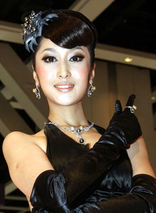 香港國(guó)際珠寶展日前在香港會(huì)展中心閉幕。珠寶展上展示的用南太平洋天然珍珠制作的首飾吸引了眾多買家和觀眾。圖為模特在珠寶展上展示設(shè)計(jì)新穎的時(shí)尚珍珠首飾。